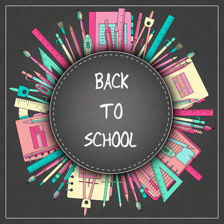 ポスター デザインのサークル内の学校アイテムと学校のタイトルのテキストに戻る のイラスト素材 ベクタ Image